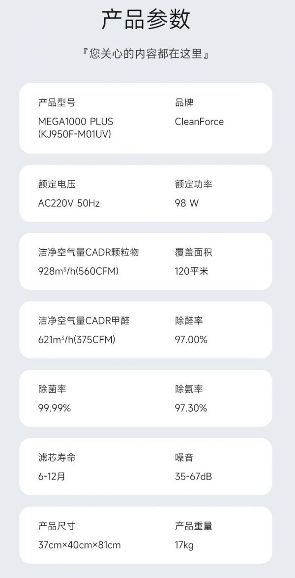 2022年CleanForce科林弗斯空气净化器正式进入国内市场,最后也附上产品参数。