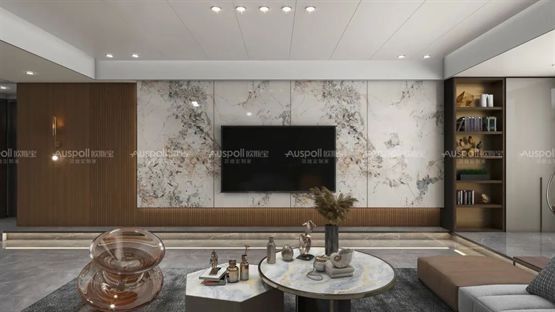 欧斯宝大规格的无界系列大板,打破传统固有的板面形态,将空间的延伸感发挥到极致。工艺技术和细节美学的完美相融,防潮防火、隔音降噪、防污抗刮等诸多优势。同时,以更多的自然元素和多饰面材质,高颜值打造家居,让空间视觉感更广。