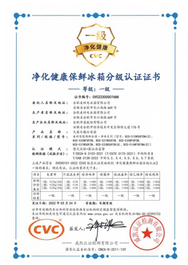 例如上文提到的美的冰箱PST+智能净化科技,将国家军工级潜艇净化技术创新应用于前沿家电科技,从诞生之初便领跑冰箱健康新赛道,先后获得国际权威机构SGS、广微的除菌、除味、除病毒、除乙烯、除农残等多项认证,并且符合《CVC标志认证试试规则 净化健康保鲜冰箱分级认证》中一级标准的要求。是比较少有一级净化健康保鲜认证的技术