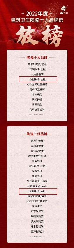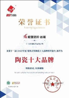 镌刻荣耀 | 能强瓷砖上榜2022年度“陶瓷十大品牌”及“陶瓷一线品牌”