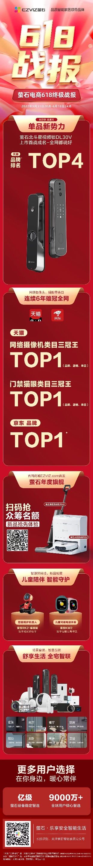 萤石发布618捷报:萤石六度蝉联网络摄像机、门禁猫眼类目TOP 1