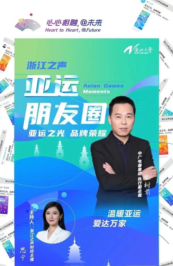浙江中广电器集团股份有限公司执行副总裁张树前亲临直播间,与浙江之声财经主播思宁一起,跟广大网友分享中广欧特斯与杭州亚运会之间的故事,详细解构绿色热泵技术如何为当下人居生活的美好赋能,并为广大听众们送去了“温暖亚运 爱达万家”消费者回馈大礼包。