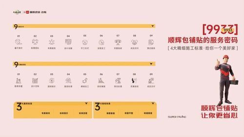 岩板推动了陶瓷企业从瓷砖渠道向泛家居渠道的延伸,让企业、经销商重新看到了传统陶瓷更大的市场空间。而关于岩板的施工服务,尤其是岩板的一体化售后施工服务体系,却仍处于不规范的阶段。顺辉包铺贴项目执行人伦景耀公布了以“优质产品+施工服务+售后服务”为标准的一站式成品交付服务——顺辉包铺贴,并详细讲解了“9933”服务密码。