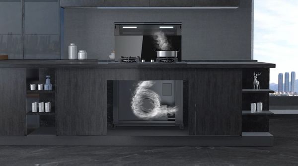 博净嵌入式集成灶,取消了传统油烟机上排风的设计,让用户更自由安装橱柜,不仅美观,收纳空间也大大提升。
