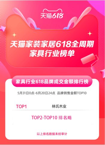 (上图为林氏木业全渠道成交额官方战报;下图为天猫618全周期家具行业榜单,来源天猫)