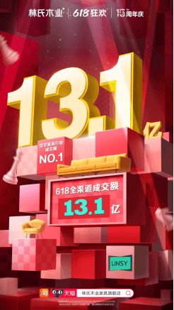 6月20日24:00,一年一度的618大促落下帷幕。据林氏木业发布的官方战报,2022年,林氏木业在618大促期间的全渠道累计成交额达13.1亿,稳居住宅家具行业榜首。