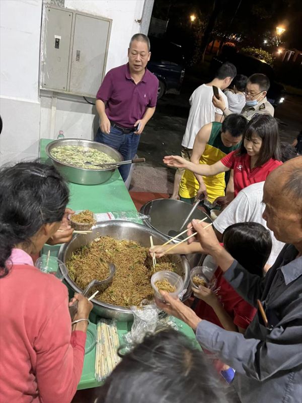 在安顿受灾群众的同时,清远生产基地行政部迅速召回后勤厨师,连夜为受灾群众做好了热乎乎的皮蛋瘦肉粥、炒米粉等饭菜。