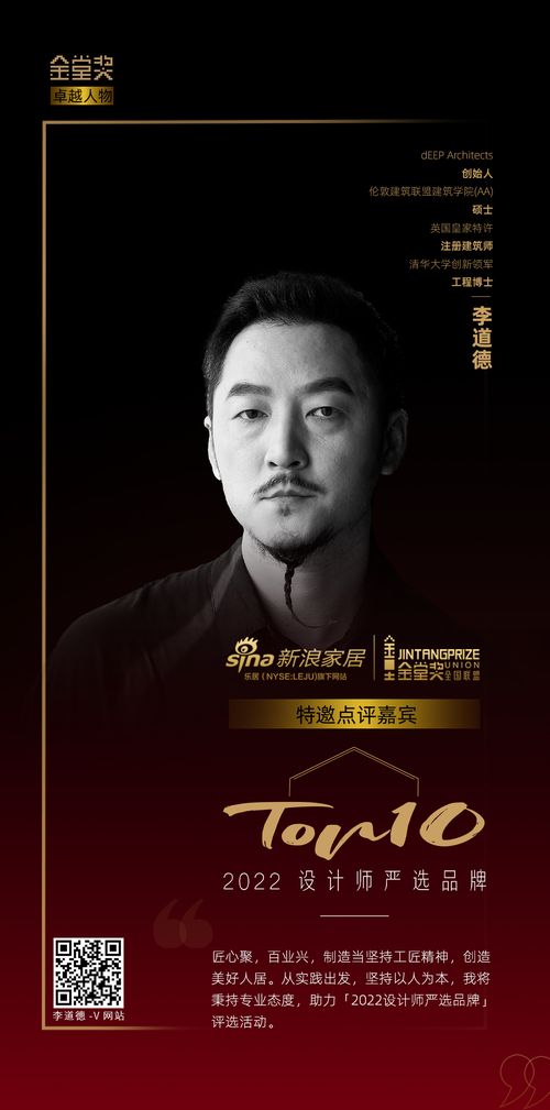 活动汇集国内设计中坚力量,范围覆盖百余城万余设计师,同时32位大咖参与点评。以最强设计师阵容,甄选出服务于设计师及业主的高品质制造品牌。李道德担任「2022 设计师严选品牌TOP 10」特邀点评嘉宾。