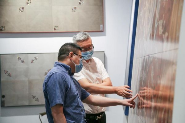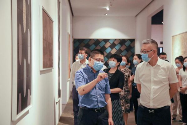 肖区长一行先后参观了书香门地美学总部基地、书香门地美学展厅,了解书香门地企业情况,零距离接触上千款如艺术画作般的美学地板。领导一行不时触摸地板质感,就地板结构、耐磨度、工艺制造等问题询问,对书香门地创新设计和材料融合跨界工艺给予充分肯定和高度评价。