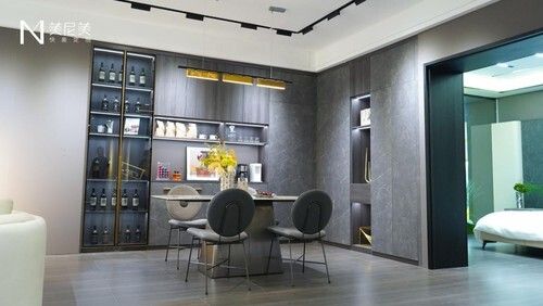 美尼美在五大风格基础上将木板、岩板、铝板等材质的多元组合运用,建立装配式快装内门、墙板、定制、灯光、吊顶、地坪、水管系统模块,实现门、墙、柜、线、天、地、水一体化,不断融合蜕变,高效输出十大空间场景,打造一站式空间解决方案。