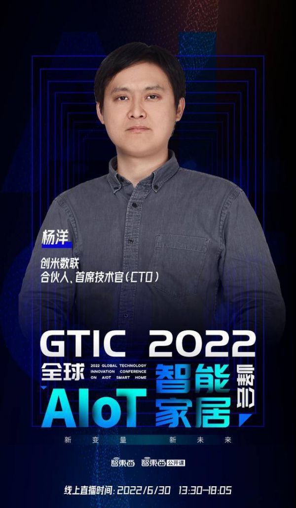 2022年6月30日,GTIC 2022全球AIoT智能家居峰会将以线上直播的形式召开,创米数联合伙人、CTO杨洋受邀出席本次峰会直播,将与来自海尔智家、小度科技、阿里巴巴、腾讯云等头部企业的众多嘉宾,共同探讨智能家居的未来发展新动力。