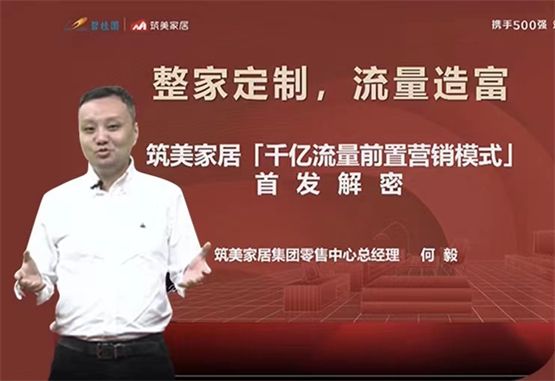 直播会上,筑美家居集团零售中心总经理何毅首先解读筑美家居整家定制新战略,并首发解密筑美家居千亿流量前置营销模式,为当前行业流量困局提出新的解决思路。