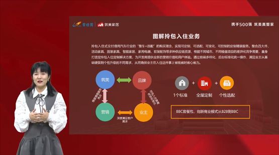 筑美家居零售中心华南区域营销总监龙欣通过BBC模式赋能案例,深入解读筑美家居“拎包入住模式”在地产售楼阶段赋能经销商的落地流程及优势。