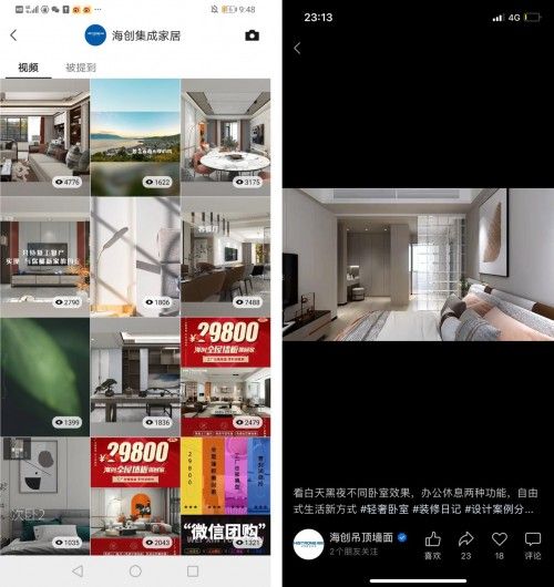 2021年,海创开始在微信视频号等短视频平台搭建企业矩阵,分享设计案例、新品资讯、促销信息、企业动态等内容,实现品牌曝光与客流量获取。