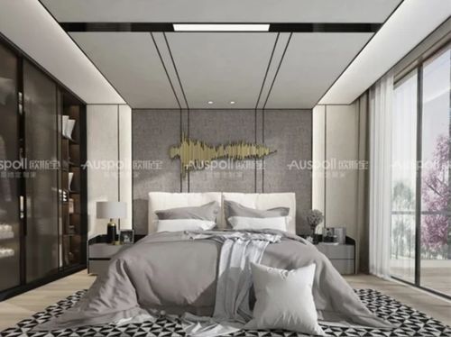 卧室吊顶空间使用蜂窝大板,每一种颜色、每一条直线都严格把控,加以欧斯宝灯饰系统的加持,空间达到层层递进的效果,简单舒适又有层次感。