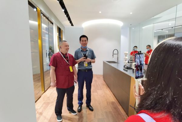 百能家居总经理王文闩与“旦哥说定制”抖音主播旦哥共同现场直播,为大家介绍百能展品,百能家居常务副总朱坤、百能家居品牌总监夏喜民接受媒体记者专访,向大家介绍了百能未来的发展规划与战略部署。