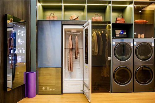 现场基于卡萨帝衣联网生态,为用户提供了洗、护、存、搭、购一体的智慧场景解决方案。早上走进衣帽间,不管是褶皱的丝巾还是受潮的礼服,经过空气洗“醒衣”,10分钟左右即可护理一新。智慧云镜每天根据天气情况推荐穿搭,1分钟就能搞定搭配,还能一键下单。智能护理柜可以对衣物实现智能收纳并进行分类,还能除菌塑形。用户想穿哪件衣物,只需一键查找,即可快速找到,1分钟换好衣服,调整到最佳状态出门。