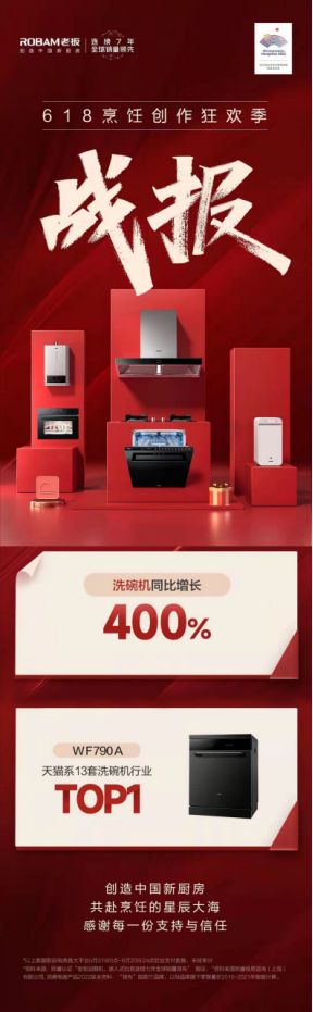 打造更适合中国厨房的洗碗机!老板电器洗碗机618同比增长超400%!