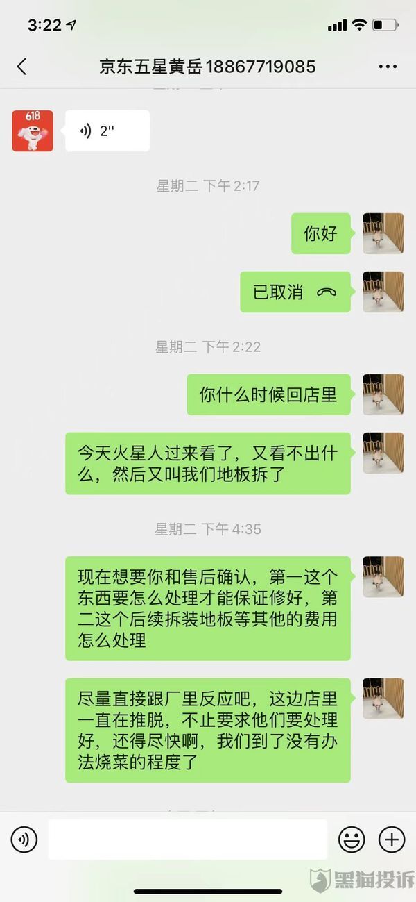 “购买的火星人集成灶是在京东实体店买的,无法吸油烟,火星人过来检查后说是预埋烟管的问题,这个预埋烟管也是火星人专卖店弄的。之前烟管弄好说有异味,过来检查过一次,我们自费撬了新铺好的地板,但是它过来检查,什么问题也没发现,又让我们铺回去了,这次吸不上油烟又说是烟管问题,让我们拆地板检查。我们的诉求:第一想说这个地板的费用就应该火星人承担;第二这个拆完必须给我们个解决方案,不能像上次一样,毫不负责的说没问题,再弄回去。我们新装修的房子因为这个无法烧菜,然后新装修的老是这么拆,我们承受不起啊。现在京东推火星人,火星人推京东,我们真的是太困扰了。”