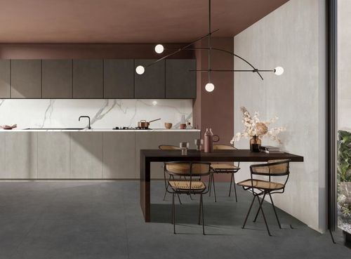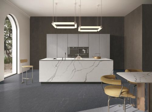 厨房台面作为家中“经受磨难”最多的地方,材料性能也显得尤为重要。艾蔻岩板莫氏硬度≥6级,耐磨程度无惧日常烹饪环境下的切和刮;吸水率≤0.5%,积水汤汁免渗漏,降低藏污纳垢的可能性;食品级表面,抗菌釉面避免细菌滋生。艾蔻岩界系列1600x3200x12mm应用于厨房岛台,为厨房建立起一层健康的保护屏障,为家居生活保驾护航。