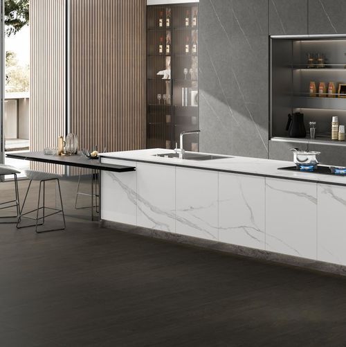 随着开放式厨房装修的盛行,岩板岛台逐渐走进寻常百姓家。岩板岛台兼顾功能性与装饰性,能够满足各类型厨房应用场景的装饰需求,符合现代年轻人追求精致、舒适、时尚的生活理念。