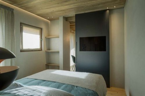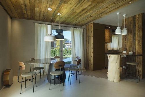 在这种情况下,第二个房子的门和墙壁也被CementoWabi覆盖。内饰以温暖的木质色调和明亮的绿色和绿松石色调相结合而著称。由于它的搭配特性,通过创造一种令人愉悦的明暗对比效果来增强房间的效果,这种效果与木材创造的效果相得益彰,实属山区风格的经典之作。