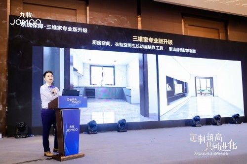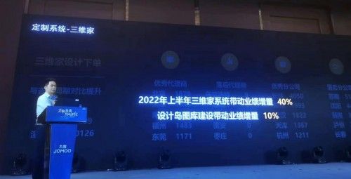 此次峰会上,九牧提出“让设计有商业价值,用技术流量解决用户流量”作为定制设计事业的指引方向,并高度认可设计以及设计工具对门店营销的赋能作用。九牧集团副总裁林友转表示,2022上半年九牧运用三维家系统设计下单,带动业绩增长40%。