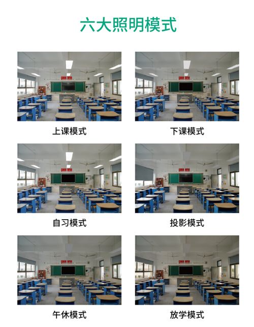 教室照明具有高照度、无眩光、无蓝光、无可视频闪和低UGR等要求,宜美照明以卓越的设计和选材,以及恒照度智能控光技术,提供六大照明模式,可为标准教室照明提供一系列解决方案。