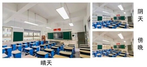 宜美照明教室用灯拥有实测558lx的教室维持照度,远超国家标准的300lx,而且是智能控光,恒定照度,能够时刻保持充足不伤眼的照明效果。晴空万里时,教室灯和黑板灯可自动降低功率,减少能耗的同时,避免桌面和黑板的眩光产生;在阴雨天外部光照不是很充足时,宜美照明教室灯可提高功率和亮度,保证桌面照度始终大于300lx;傍晚时分,传感器可将暗度信息传给控制芯片,使黑板灯和教室灯会根据黑暗程度自动调节,始终保持室内均匀的照度。