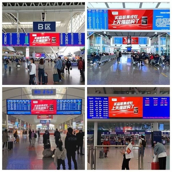 品牌热销的背后,离不开森歌多年来对于品牌声量的打造和维护。春运高峰期间,森歌在全国150个城市、109个高铁站的276块LED大屏和六大省份的105块高速大牌,在各大交通枢纽组成的近400块广告大牌的全面覆盖中辐射全国各地,实现亿级曝光。