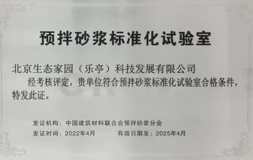 喜讯!北京生态家园(乐亭)科技发展有限公司 荣获“预拌砂浆标准化实验室”;