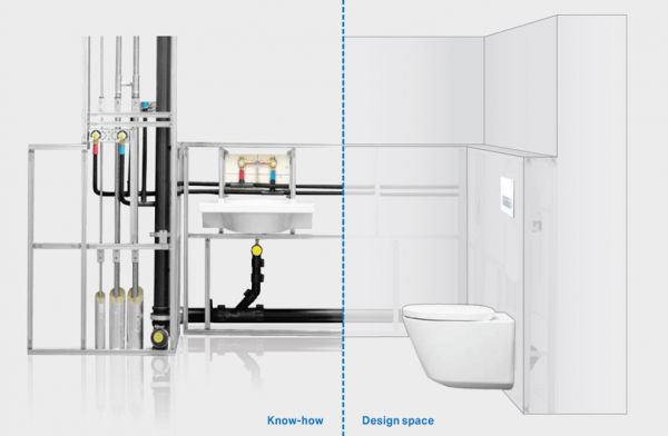 HAUT在设计之初就被称为“高级定制建筑”,52个公寓单元的内部布局可以根据买家要求进行定制。卫生间当然也要能够按需求定制,这靠的就是墙后的吉博力同层排水技术:沿墙而走的管道,无需穿越楼板,直接接入主管,卫生间自由布局,让高级定制在管道纵横的小天地也能够实现。再加上可预制的杜菲斯Duofix安装系统,紧凑而清晰的管道布局,多种规格尺寸的配件以及人性化的装配方式,轻松完成墙后管道系统安装,降低洁具安装难度的同时,精准度和施工效率却大幅提高。
