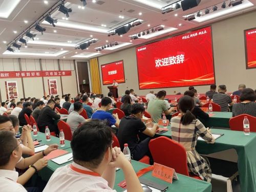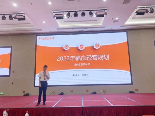 福庆家居第三分公司销售总监荣祝尚荣总首先发表致辞,随后福庆家居招商南区许苏云经理为大家宣讲2022福庆板材招商手册,通过解析家装万亿市场规模与发展潜力、制造强国战略下的福庆转型之路,并概述福庆32年发展中的优势与成绩,助力盟友把握新形势、共创新局面。
