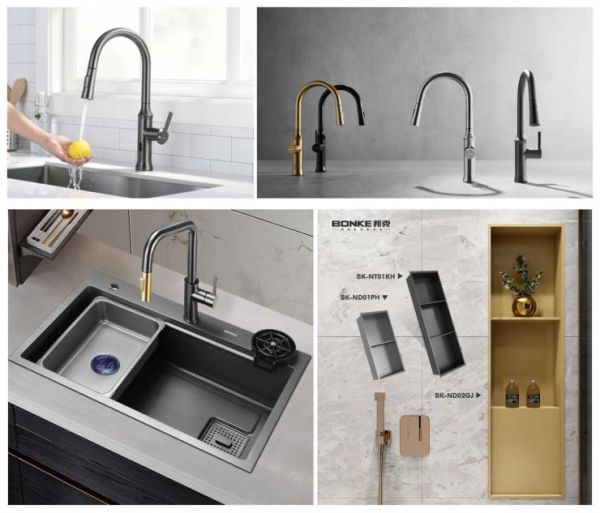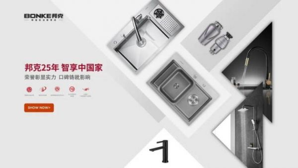 围绕现代厨房对烹饪和洗涤的需求,邦克推出了包括智能语音红外厨房龙头、水易净系列水槽、梵拉智能触控龙头、水触媒智能水槽、洗杯器手工水槽、小蛮腰水龙头、厨余垃圾处理器、卫浴壁龛等一系列标准化智能厨卫五金产品。邦克厨卫五金智能化产品的出现,弥补了传统厨卫产品创新乏力的缺陷,也迎合了年轻消费群体对健康、设计感及个性化的消费升级。