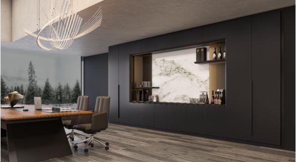 值得注意的是,除了极具差异化的零界技术设计外,Ai8优于市场常规标准的超长门板、超厚层板及超环保选材,以及满足个性化的八大工业系统,在功能与美学之间取得了完美的平衡。其中包括首次在家具中亮相的45°美学光源、以信息安全为首要的保险箱、获得不少赞誉的“富春山水纹”板岩等,诸多首屈一指的设计亮点集于Ai8一身。无论是用于陈列空间、视讯空间、知识存储空间、Ai8都能将实用于美学融于一体,构建出让领导者的个性需求得到最大化满足的一品高定空间。