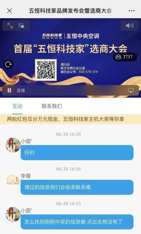 此次五恒科技家品牌发布暨选商大会采用线上直播的方式,由上海总部和山东制造基地为主会场,协同全国26家分会场同步直播,同时也安排了两轮共计万元的红包雨,以及第五代五恒空调系统室外机和恒温恒湿室内机各一台的大奖。