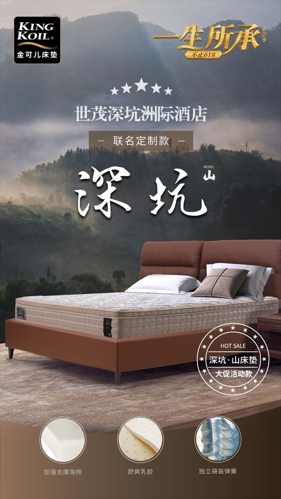值得一提的是,拥有强大酒店背书的深坑系列是本次活动的主打款之一。作为世茂深坑酒店官方联名款,它从设计之初,就考虑到深坑酒店负海拔的特殊性。为真正拥有地表之下的“深”睡眠,金可儿特意采用透气性更好的舒爽乳胶材料,让床垫“会呼吸”,保持清爽干燥。它抗干扰性强,能减少睡觉时翻转带来的影响,且拥有天然阻隔尘螨的性能。