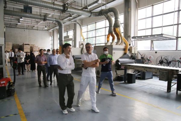 练峰一行先后参观了书香门地集团美学总部基地、CNAS国家认证实验室、生产车间、美学展厅、企业文化展厅、书香之家职工图书馆等,了解书香门地集团发展、生产工艺、技术研发、文化建设等相关情况,双方在会议室进行了座谈交流。