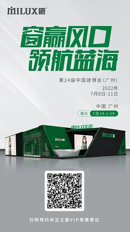 作为中国系统门窗行业的领军品牌,米兰之窗不断引领中国门窗新风尚,此次展会不仅是米兰之窗对产品工艺创新展示,更是在独具影响力的行业舞台彰显品牌综合实力的亮剑之行。2022年品牌首秀即将拉开序幕,行业盛世纷呈,7月8日-11日,中国进出口商品交易会展馆(广交会展馆)C区14.1-16展位,米兰之窗整装待发,势必领潮中国建博会,如约相”建“,聚享未来。