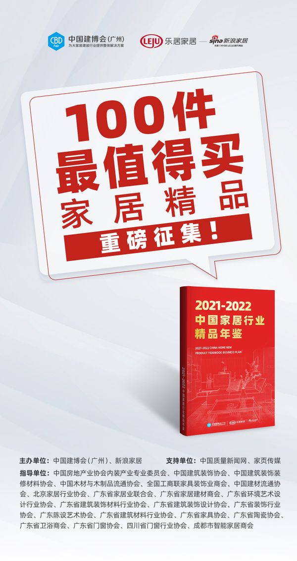 “献礼国强家好新时代,致敬家居质造新榜样”,此次中国建博会(广州)还与新浪家居强强联手,立足大国家居质造典范,重磅推出《2021-2022中国家居行业精品年鉴》,通过对上百款家居精品、好物的凝炼与梳理,深度挖掘品牌价值,推动企业成长,记录产业发展,为践行家居行业高质量发展,贡献卓越力量。本次年鉴内容全新升级,将从产业、行业、设计三大层面,多维度发掘家居行业产品榜样,倾力打造重磅阵容,集合20大权威协会助力,众多家居KOL共鉴,从行业指数、产品指数、销售指数、口碑指数、品牌指数五大维度,对产品进行客观全面评测,为家居消费保驾护航。