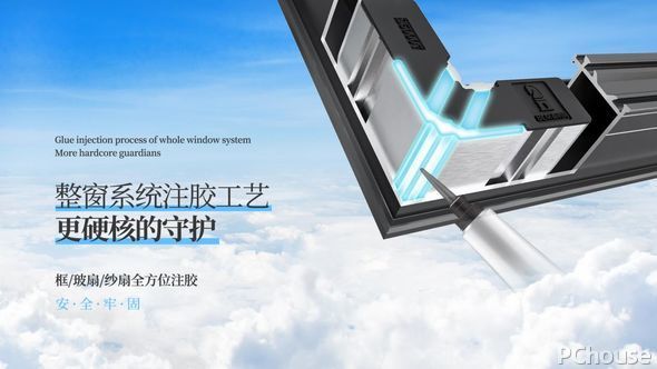 云影系列系统窗用材考究,采用高强度铝合金型材,壁厚超越国标1.8MM,搭载多腔体结构设计,铸造了强悍安全的性能;整窗系统注胶工艺,框,玻扇,纱扇全方位注胶,增加窗框整体的强度,更安全牢固。如此精工打造,为家带来更硬核的守护。