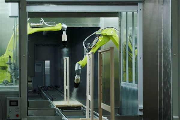 这座科艺园区不是普遍认知的家具制造工厂,极富科技感的绿色车间内,实现着最大程度的“无人化”智能生产模式;在柔性涂装线,有智能机械臂忙碌有序地喷涂;在智能零部件超市和连廊物流系统中,能看到智能机器人的穿梭配送,实现智能化存储,且最大程度实现人机结合的智能化:通过扫描零部件上的二维码、可以从智能终端上实时获取作业标准、作业任务及完工数据,实现传统手工作业的“在线管理”,并对零部件质量、数量以及员工绩效实现可追溯管理。