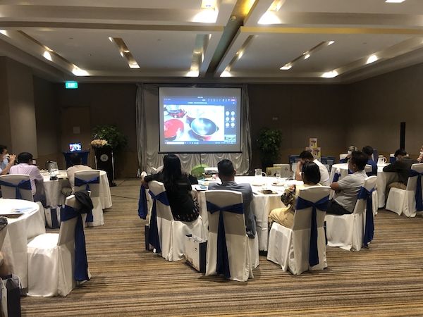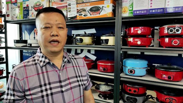 星迈黎亚代运营合作厂商向缅甸采购商介绍多种款式的电热锅产品