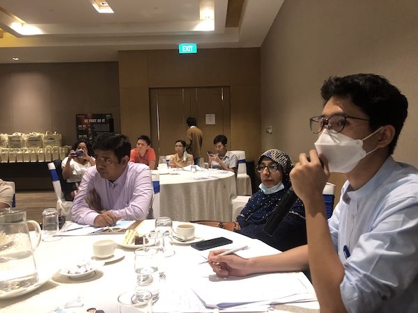 在星迈黎亚仰光商贸城采购对接会现场,缅甸采购商正认真聆听中国厂商介绍家电产品