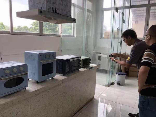 星迈黎亚代运营合作厂商向缅甸采购商展示不同款式的微波炉产品