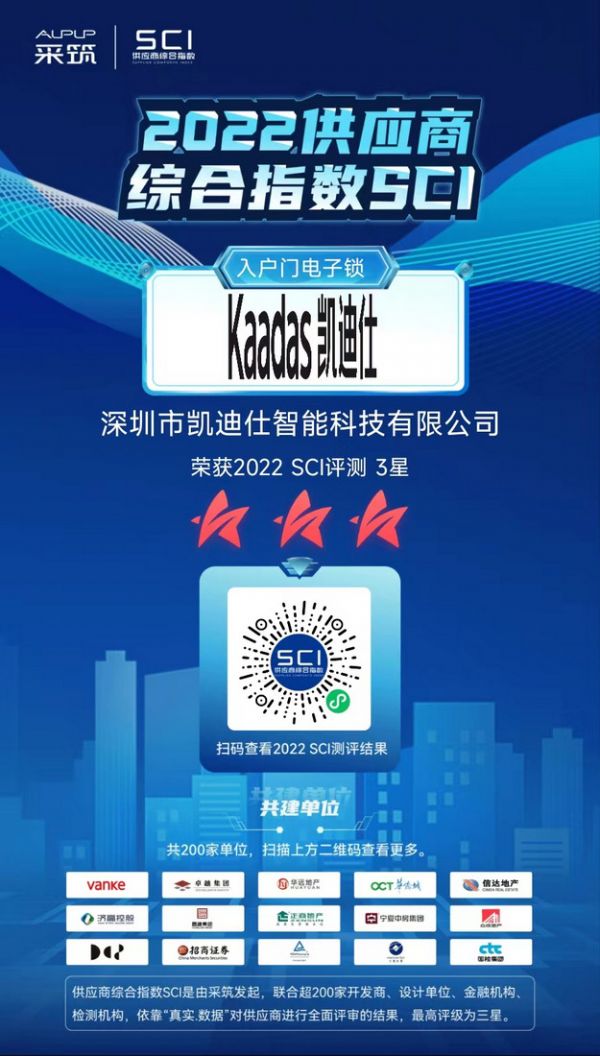 采筑2022供应商综合指数SCI重磅发布!Kaadas凯迪仕获评三星供应商 行业唯一入选品...