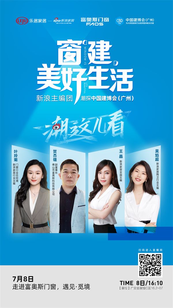 展会期间,新浪家居特别策划“潮这儿看”主编逛展,直击展会最值得关注品牌与活动,剖析行业最新趋势,为消费者展示最前沿的时尚元素与家居潮流。7月8日,由新浪家居行业主编、门窗行业总经理叶玲菊,新浪家居全国主编王晶,新浪家居陶卫行业主编吴焰超组成的“潮这儿看”主编团将走进富奥斯门窗,从行业、设计与媒体视角,探寻富奥斯门窗从“自然”到“生态”再到“科技”的全方位发展。将诗意与科技平衡融合门窗产品,会有给消费者带来怎样的惊喜呢?