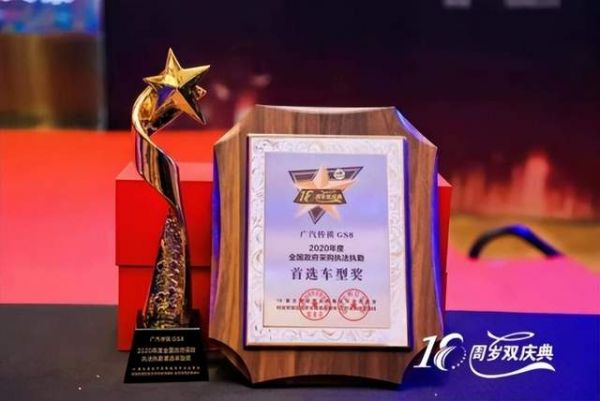 在2021年第16届全国政府采购集采年会上,广汽传祺还凭借着自身卓越的产品、优秀的市场表现和优质专业的服务,一举拿下两项政府采购“首选车型”大奖,分别是传祺GS8获“2020年度全国政府采购执法执勤首选车型奖”、传祺M8获“2020年度全国政府采购领导服务用车首选车型奖”。
