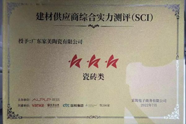 荣誉丨马可波罗控股广东家美陶瓷有限公司获评采筑2022“三星供应商”