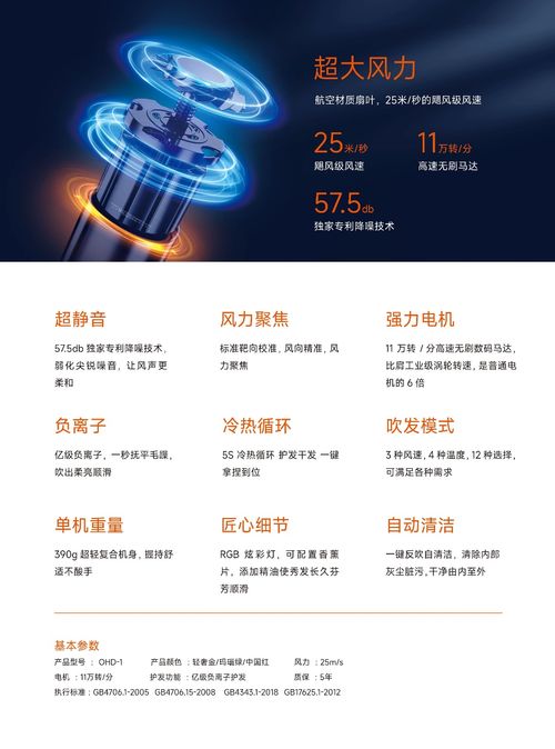 同时,高速无刷数码马达搭配优化风道,最大限度降低气流所产生的震动,从而达到低音降噪,握持使用几乎感受不到马达震动,声音悦耳而舒适,最高转速噪声峰值仅有57.5分贝。